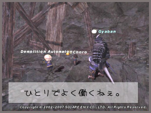 で、解体ってなにを?と思って見回すと、木が崩れている場所があった。近づくとマトンが自動的になんかしゃべって解体作業を開始。ひとりでモクモクと「ドスッ!バキッ!」という音を立てている。