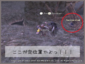起きた瞬間襲ってくるカニ。アタリマエか…。しかしさすがガルカ!殴られても奇跡的に生き残り、その隙に空蝉を唱える事に成功!そのままダッシュで遠くへ走り去ってくれた。
