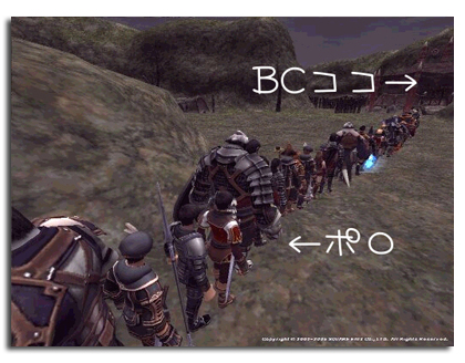 とてもこの行列に並ぶ気になれないのでチョロはこの日は一旦この場でログアウトした。次にログインしたときすいてるといいな〜なんて淡い期待と共に・・・。Porojrは結局5時間くらい並んでBCに入ったと言っていた。そのうち2時間以上は前の人にオートランした状態でうたた寝してしまったけど、奇跡的に前の人が装備を変更しなかったみたいで起きたときにはちゃんと並んだままかなり前に進んでいた、と言っていた。意地になっていたとはいえよく並んだなぁ・・・。