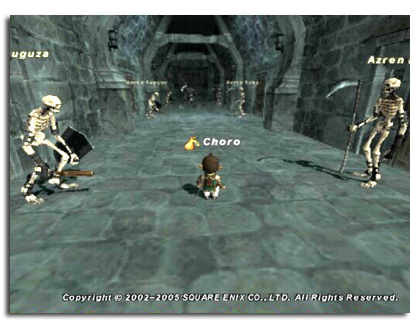 アッと思った時にはもう誰かが絡まれていた。必死で戦ってPorojr1名の死亡で何とか勝利。後ろの見張りっぽいホネが生命感知で襲ってくるかと思ったけど、結構近いのにこなかった。よかった・・・・。そして中に入ると、間違いなく普通の敵じゃない風貌の人がいた。