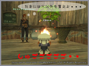 みんなウィンでお水と言えばどこで買っているんだろう?チョロはもっぱらチャママの店のミスラである。というかこのミスラから水以外の物を買った記憶がない。ここは調理ギルドからも近いし、ワープを使えば競売も結構近いしお気に入りのお水屋さんなのだ。