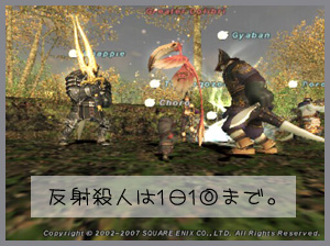 この前ここで遊んだ時はナイトのガトさんがいたので、コリブリをやりながら魔法の反射をバンバン飛ばしても誰も死ななかったのだけど、この日はチョロがサンダー4でついさっきPorojrを殺したばかりだったのだ。