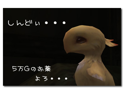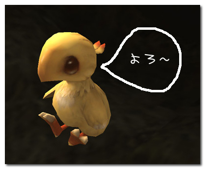 ■色々悩んだあげく、チョコボままでいいか・・・とつけていないらしい。しかも初日に全種類のエサをイヤイヤ食べさせたらしい。恐るべし、データ収集家。